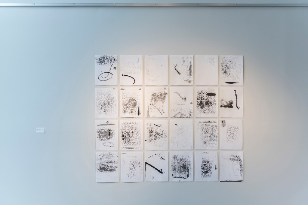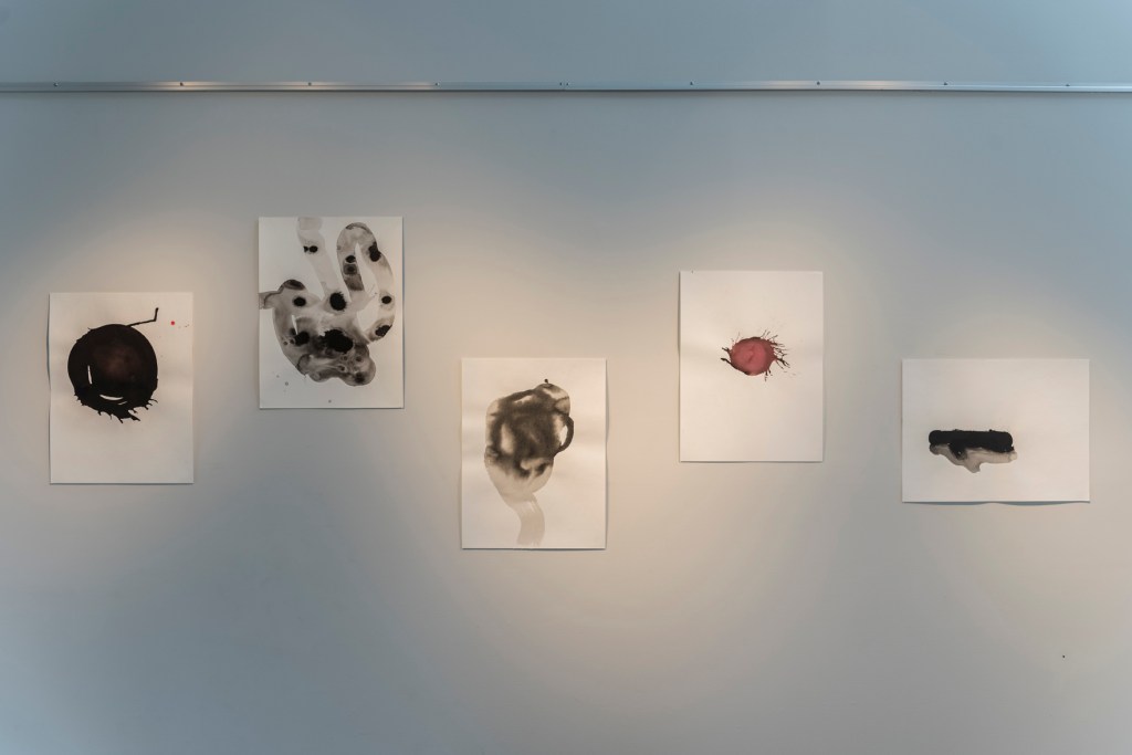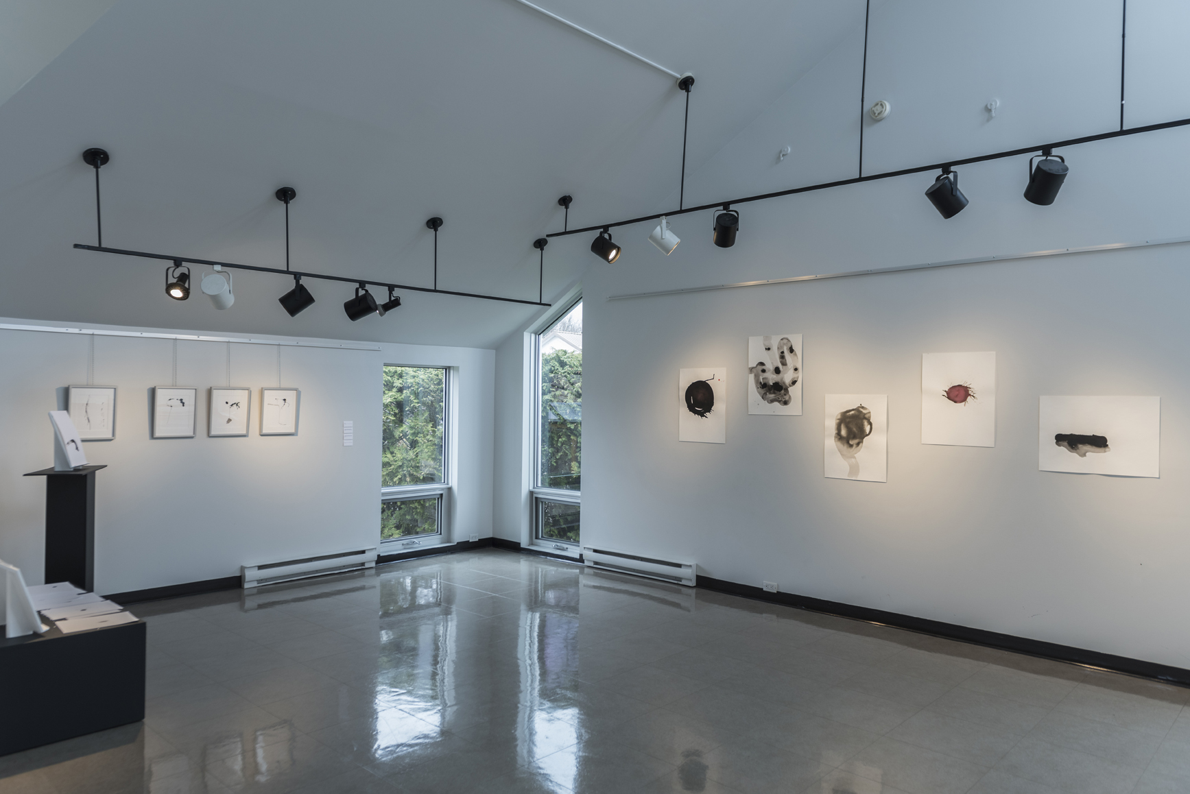 Déployés dans l’espace en tenant compte de l’architecture du lieu, les dessins montrent au spectateur simplement ce qu’ils sont.